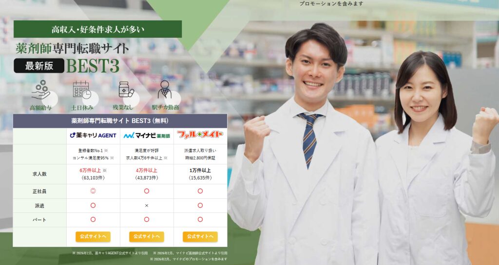「薬剤師 求人サイト比較研究所」は、日本国内の薬剤師転職サイトを複数比較・紹介するポータルサイトです。
